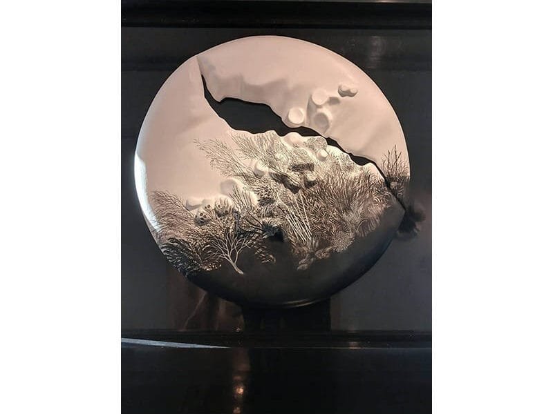 Obra de no fácil clasificación , objetos escultóricos, formas ovoidales, algunas como piedras encontradas en sitios arqueológicos, otras como tótems que colapsan ,gráfica paisajística, negros que se mezclan con blancos purísimos y los colores del bosque que convocan a lo ecológico pero sin atisbos panfletarios.