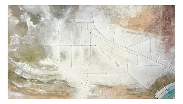 En su muestra actual, señala  Dourrón, “Levy recupera el potencial estético de la abstracción para trazar itinerarios minerales con la tierra y con la vida”. La artista mezcla óleos con residuos de salmuera de un sitio extractivo en el salar ya mencionado. De allí la imagen árida, seca, de la superficie de los cuadros expuestos con un trazado de líneas indicativas de las rutas surcadas por camiones con su carga de minerales y de las personas que son desplazadas de su hábitat.