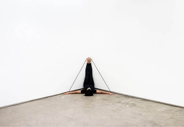 Se trata de un ensayo sobre el movimiento y su interrupción, sobre el dibujo como coreografía mínima y el espacio como superficie de respiración. Su cuerpo como lo demuestra la foto establece una perfecta geometría que rivaliza con estos tiempos en los que el apuro vertiginoso actual es le mot d’ordre. Según los curadores, Natalia Sosa Molina y Víctor López Zumelzu, “la acción se concibe como una espera activa”.